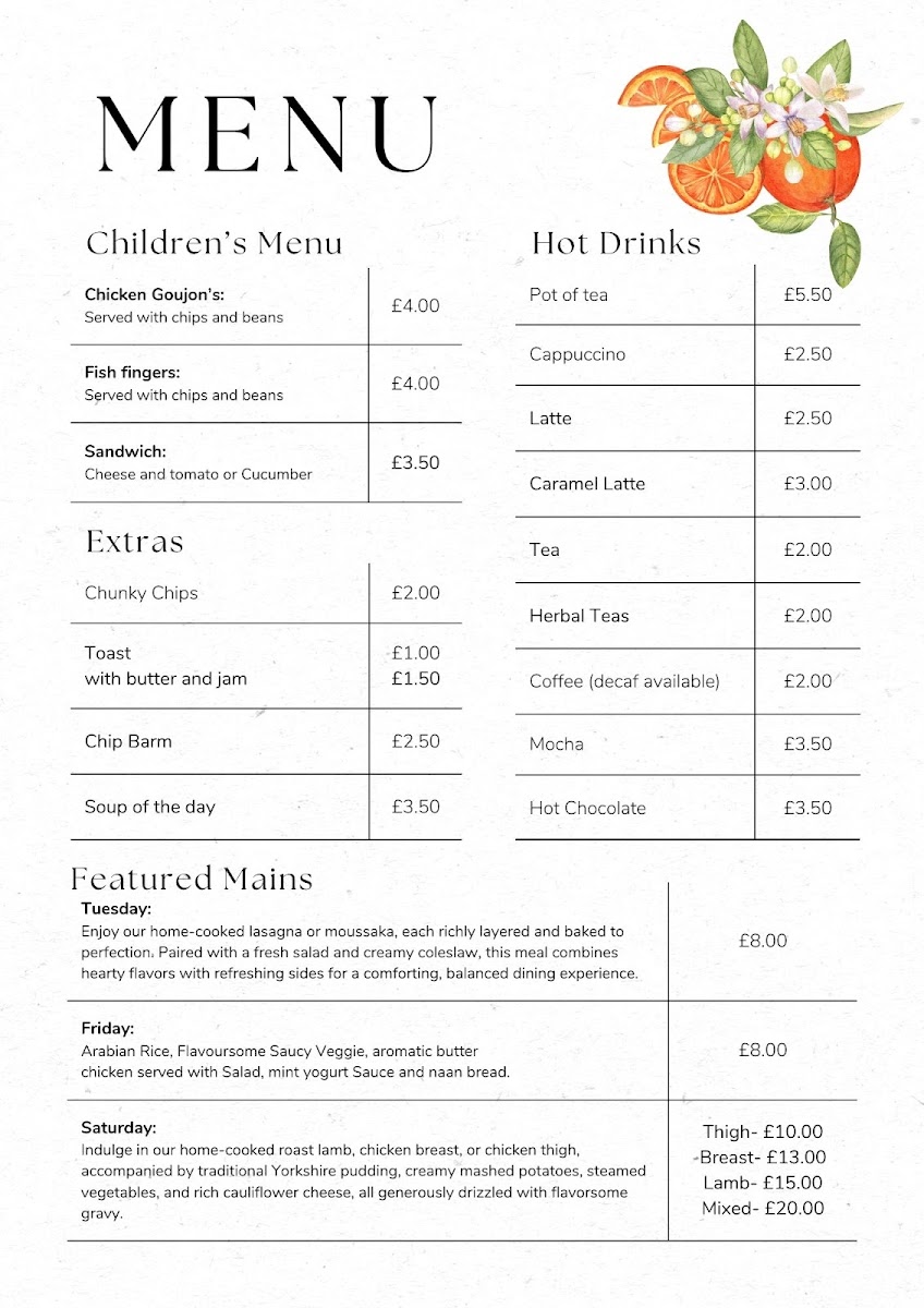 This menu setup is suitable for visitors looking for breakfast options, casual dining, or coffee breaks. The variety of items makes it convenient for quick orders as well as relaxed meal times.